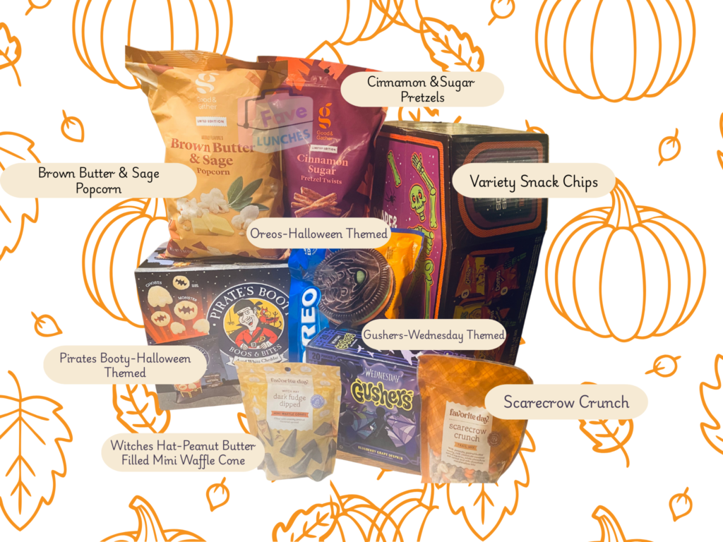 Halloween Themed Lunches! The excitement around holidays is a great way to tie in some fun holiday foods into lunches. This strategy is all about safe exposure. By integrating new food items or familiar foods in unfamiliar formats into a festive theme, you’re providing a fun, low-stakes environment for interaction. Your child holds the power: they can touch, smell, and observe the new ingredient, and ultimately choose whether or not to try it, without the anxiety of a formal meal.