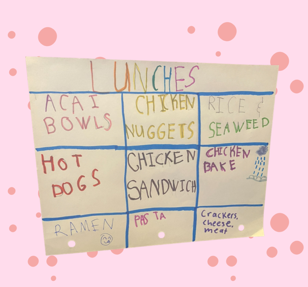 Planning ahead is the secret to making school lunch prep quick and stress-free. Start by creating a “menu” of your child’s favorite lunches. Write them out, or let your child help, have them write the list, draw pictures, or even take photos (or find images online) to make it fun. This becomes your permanent lunch menu.